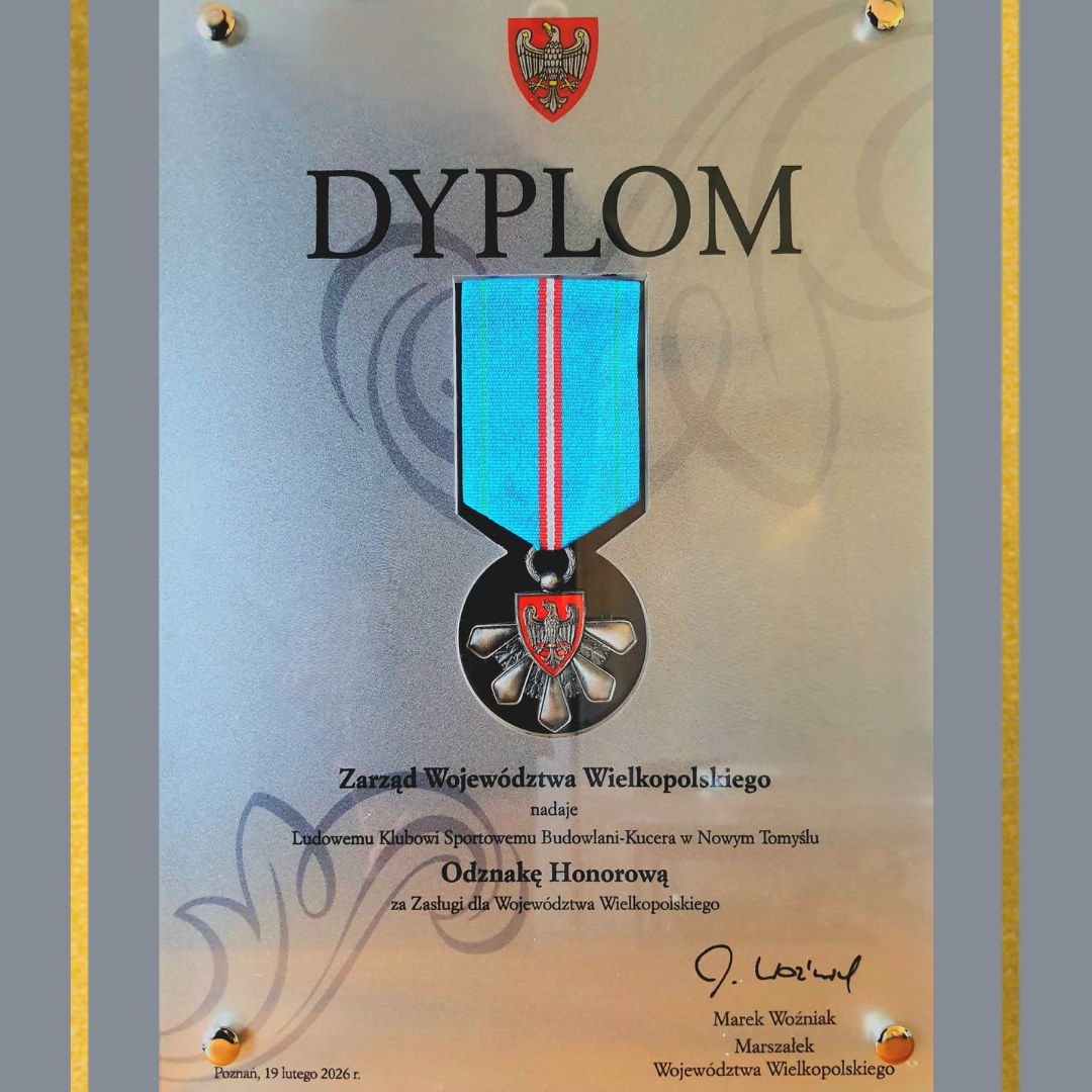 Z ogromną dumą i radością informujemy, że Zarząd Województwa Wielkopolskiego nadał Ludowemu Klubowi Sportowemu Budowlani-Kucera w Nowym Tomyślu „Odznakę Honorową” za „Zasługi dla Województwa Wielkopolskiego”! Odznaczenie zostało wręczone 21 marca 2026 r. podczas uroczystej gali 100-lecia WZPC w sali sesyjnej Wielkopolskiego Urzędu Wojewódzkiego w Poznaniu, co uczyniło ten moment jeszcze bardziej wyjątkowym. To ogromne wyróżnienie jest dowodem uznania dla dekad pracy, zaangażowania oraz wkładu naszego klubu w rozwój sportu dzieci i młodzieży oraz społeczności w regionie Województwa Wielkopolskiego. Dziękujemy wszystkim zawodnikom, trenerom, działaczom, rodzicom zawodników, sympatykom, sponsorom oraz podmiotom współpracującym – to wynik wspólnej wieloletniej pasji i wsparcia, które sprawiają, że możemy dostąpić zaszczytnych chwil!